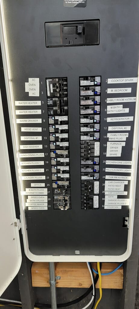 - Compatibility: Smart panels cut power to entire circuits, which may not be the best way to control devices such as electronics or HVAC systems. Multiple rooms may be on the same circuit, giving less control and granularity than smart plugs or smart lights. In my case I had to double-up some circuits on the same Span control (ie, the AC and Oven are ganged together on a quad circuit breaker, which means Span sees them as a single “circuit”) in order to fit all the circuits in the panel.