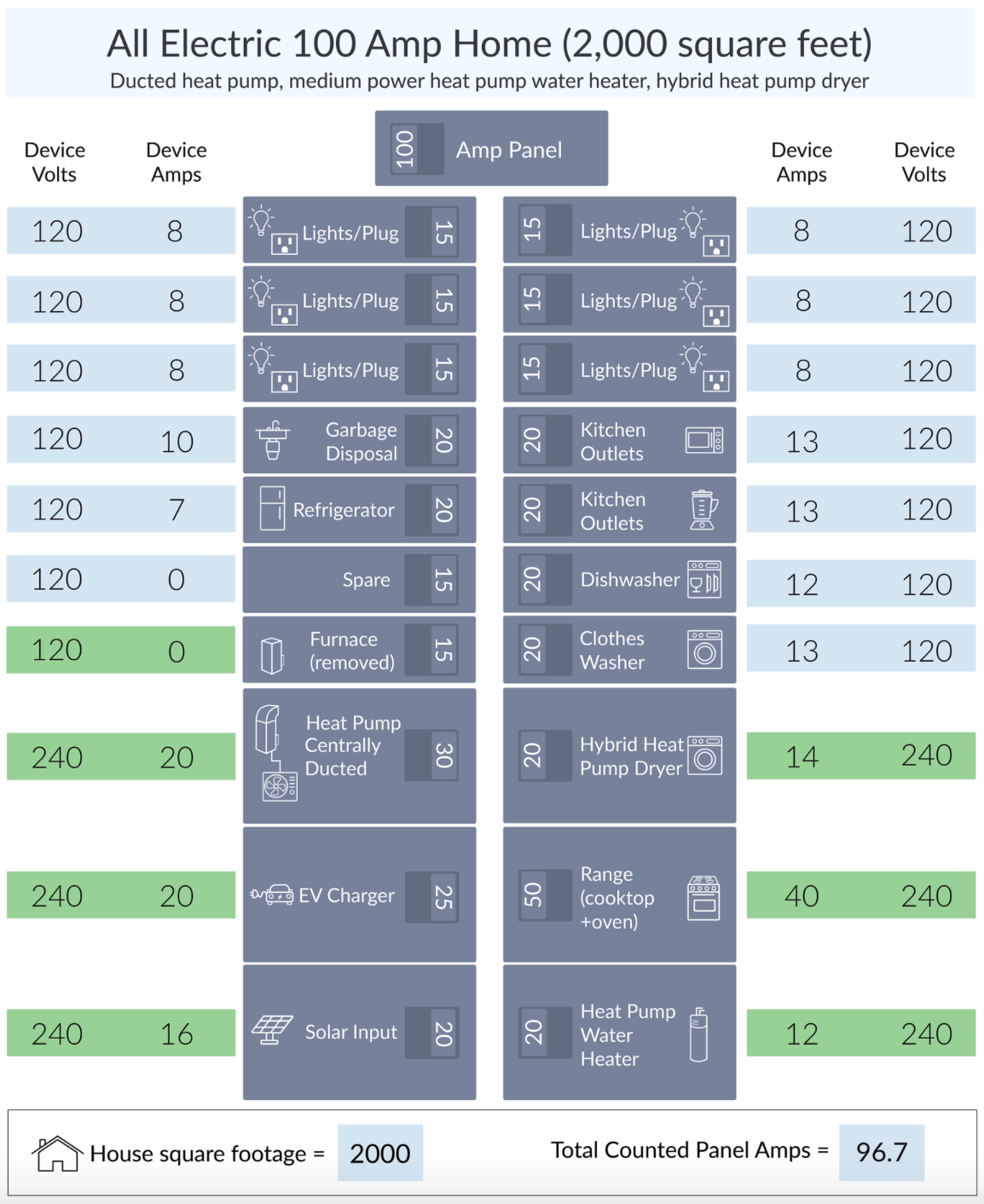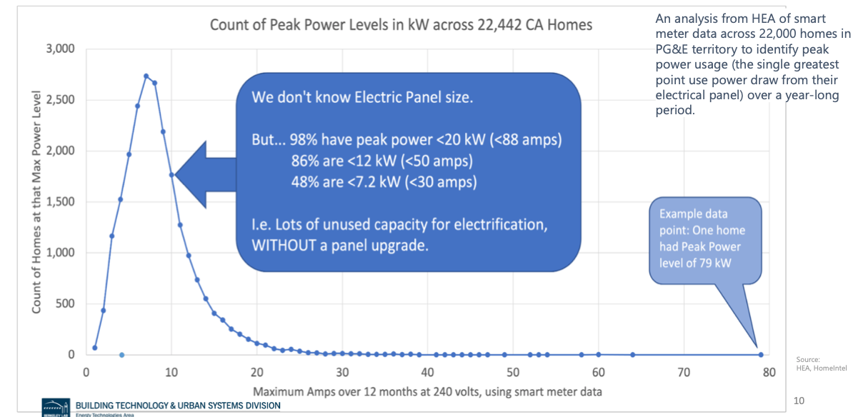 In fact, to prove it's possible to fully electrify a 100-amp house in the real world, a professor at Purdue's Center for High Performance Buildings set out with his grad students to test this out in the midwest - in the middle of winter - with a 2200 square foot, fully-electrified home with an EV. They showed you could in fact fully run the house by carefully controlling only the home thermostat and water heater run times (graph of usage and full paper)!