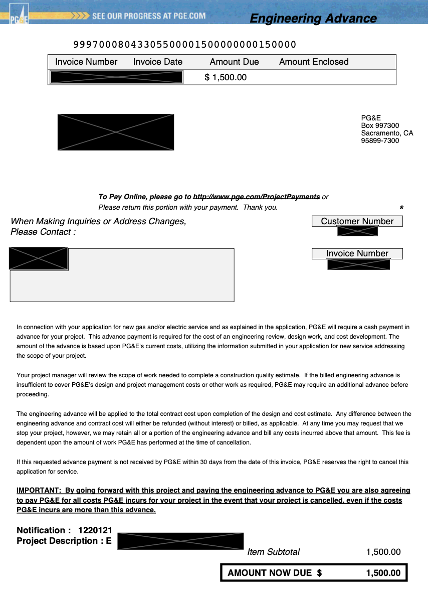 Service Upgrade documents from PG&E in California