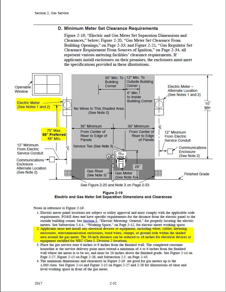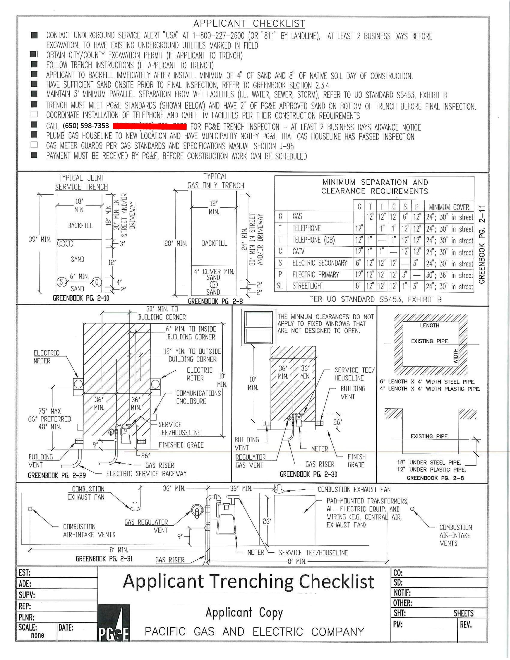 Second issue: Scheduling a service upgrade with PG&E, my utility. For an underground service upgrade, there are a whole bunch of specific requirements, such as outlined in the below specs: